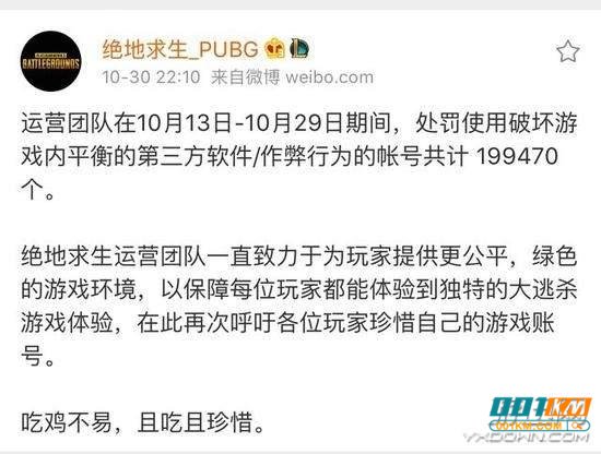《绝地求生》封20万个辅助账号!大部分都是黑号!