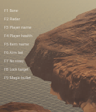 F5.显示物品(开启后显示物品跟车辆名字,建议捡完物资后关闭此功能。)