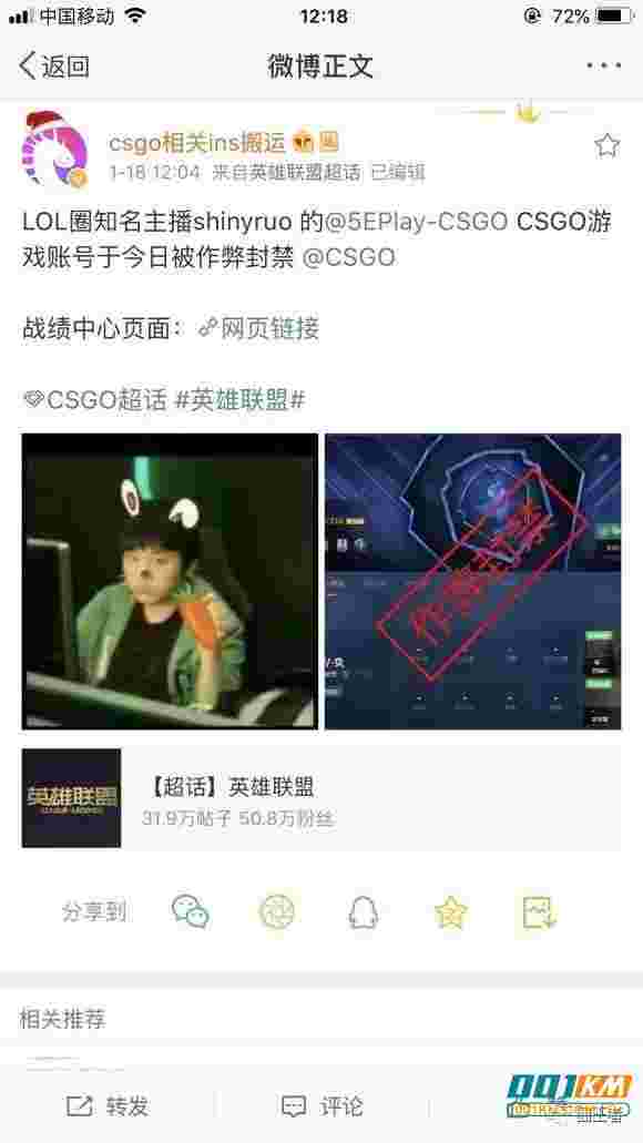 山泥若CSGO开挂被封,信心直言透视辅助不算开挂