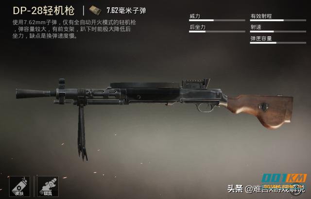 而伴随着每一次版本的升级调节,武器的出场率也是有转变的,在当今版本中,新疆大盘鸡DP-28则慢慢变成了受欢迎武器,这把枪在以前的版本,实际上是一把小众武器,尽管基本弹容积高,但由于装弹的時间过长,在近身武器的情况下容错性比不上M416和AKM那样的自动步枪高。